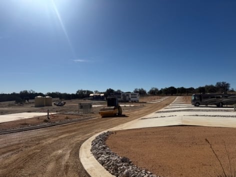 In other areas of Phase 3, this week we took delivery of our wastewater holding tanks. All the granite gravel for the revised landscaping plan has been delivered, and the landscape team is spreading and rolling the material between all the pads. Topsoil and grass seed has been spread on the slopes, and erosion control matting has been installed to keep the seed and topsoil in place when it rains. Once all the granite gravel is complete, we will install drought resistant plants on every site, and your pedestals / RV electrical hookups will go in, which are all on site and ready for installation.
